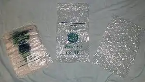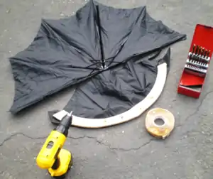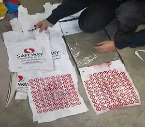 | Materials | parchment bags, plastic bags, umbrellas |