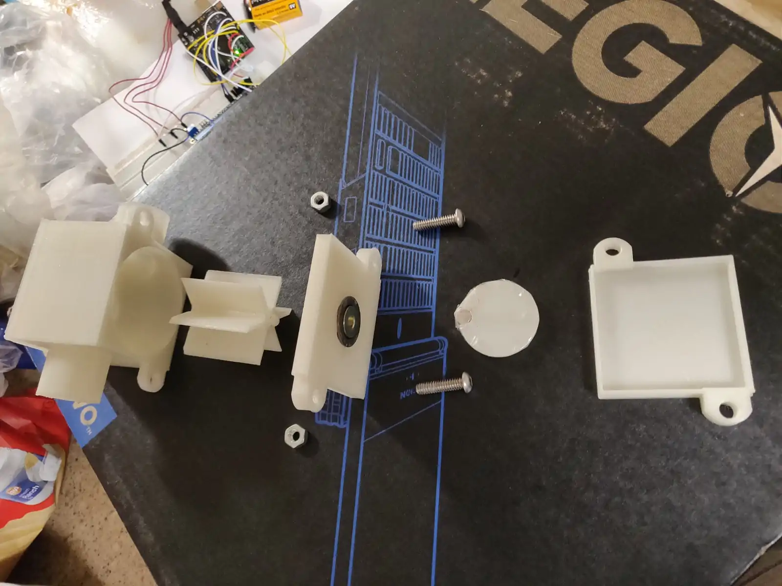 - All parts required for the assembly of the apparatus available at https://www.youmagine.com/designs/flow-meter
