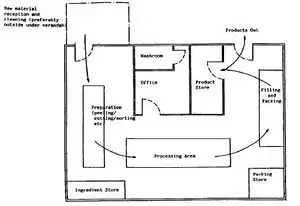 Figure 1 shows a typical layout of a food processing room, showing how raw materials move