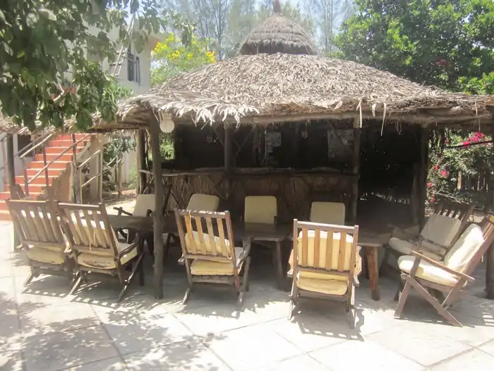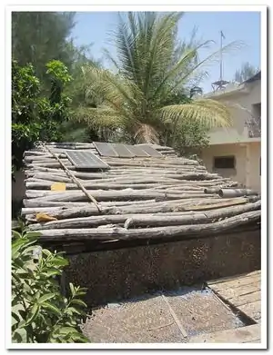 Each hut (where guests stay) has a composting toilet, whose base is concrete and with a depth of one meter. Each toilet consists of two compartments, so when one is full, the toilet seat is switched to the other compartment. As with most compost toilets, sawdust is used. This helps to ease the use of water. Within about a month the compost is done and ready to use in the garden.