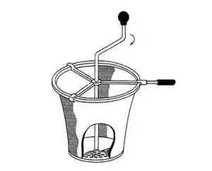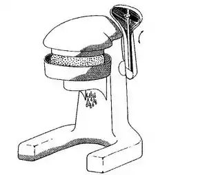 In the case of citrus, this is easily done with a hand presser or a revolving citrus 'rose', Figure 1. Other fruits such as mango, guava, soursop, etc require pulping - that is, after peeling and stone removal, the flesh of the fruit is pushed through a perforated metal plate. For this process, there is a range of equipment available from the small 'Mouli Legume' and several versions of hand-powered pulper/sieves, all of which force the fruit pulp down through interchangeable metal strainers, Figures 2 and 3.