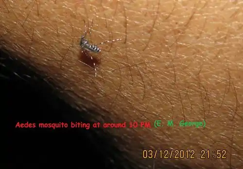 AEDES AEGYPTI MOSQUITO THAT SPREAD ZIKA, DENGUE ETC. BITING GEORGEDAPPILLY (alias George E M) AT 10AM