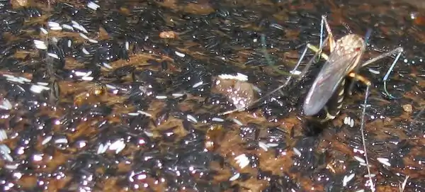 Culex Female Laying Eggs on moist horizontal surface