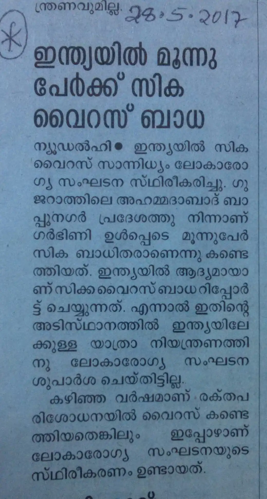 - Zika fever, confirmed by W H O in Delhi 2 years ago (in 2016). It is awaiting the next fever season here (Keralam)!