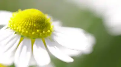 The flowers of German chamomile resemble small daisies. The petals are white in colour, and the flower has a yellow centre. The plant flowers during the warmer months.