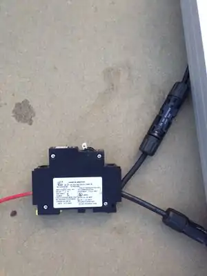 Caption - Connect the positive wire from the PV array to the 30Amp breaker, then into the charge controller. Make sure the breaker is switched to the off position.