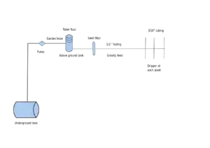 Gravity fed drip irrigation, with the intent of complete, hands free automation.