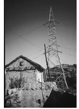 The national grid is a network of power lines which allows distribution of electricity throughout all or part of a country. The grid can be connected to a single power source or electricity generating plant but is usually linked with other plants to provide a more flexible and reliable network. The electricity is usually transmitted at very high voltage, typically several hundred thousand volts (depending on power transmitted, national guidelines, etc.) as this reduces losses and means that smaller cables can be used, reducing the overall cost of the network. Bulk electricity is generated and transmitted in 3 phase, alternating current (a.c. - 50 or 60 cycles per second) form and distributed to the consumer as three phase or single phase depending on the end use requirements. Transmission by direct current (d.c.) is also used, losses associated with d.c. electricity being lower than a.c., but other costs are incurred as heavy duty rectification equipment is then needed to supply a.c. electricity to the consumer.