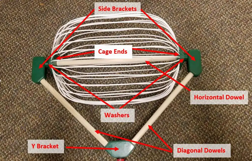 - The dowel rods, side brackets, Y bracket, cage ends, and broomstick should be dry fit together.