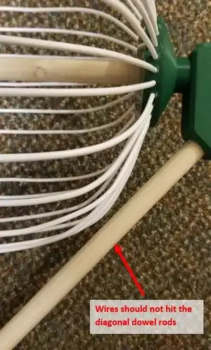 - Wires should be dry fit and tested to see if the hit the diagonal dowel rods. If the wires hit, re-bend them or shorten their length. (image below)