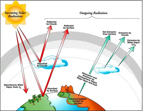 The Solar Radiation Monitoring Station project is one of Humboldt’s Renewable Energy Student Union’s responses to the need for more renewable energy. The basic idea behind this specific system is not to create power but to collect information on solar power. As demonstrated in Fig.1, the usable Solar Radiation is more complicated than simply what the sun emits. The atmosphere which the radiation travels through needs to be taken into account due to it's distorting effects on usable energy at the earth's surface.
