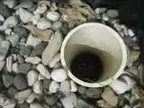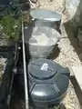 The three tinacos, which served as fish tanks, were placed partially in the ground to provide the fish with greater protection from the weather by using the earth as an insulation barrier to keep the water at a more stable temperature.