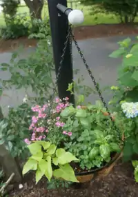 Some gardeners like to rotate hanging baskets to give the plants the best chance of getting sufficient sunlight from different positions.