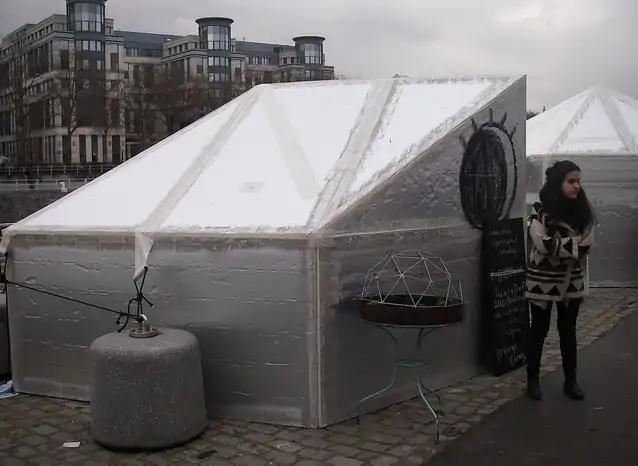 - Quaddome at Burning Man 2011: http://www.morganengel.com/2011/09/nearodesic-polyhedron-hexayurt-dome/