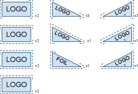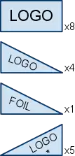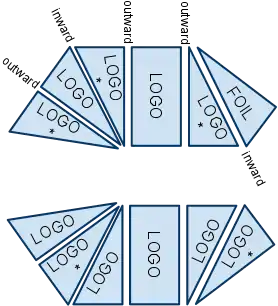 Again, the drawing is showing the inside of the roof, which is mostly logo’ed. When building a single H13 from 13 panels, it is unavoidable that one half-panel (the one marked as showing the “FOIL” side in the drawing) will have its logo side showing from the outside. If this is a concern (if this is for Burning Man, for example), this triangular panel can be taped over to hide the logo.