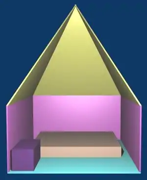 - Two 8'x4' plywood sheets, often used for packing, perfectly fit as a floor (inside walls without beveling, under walls with beveling).