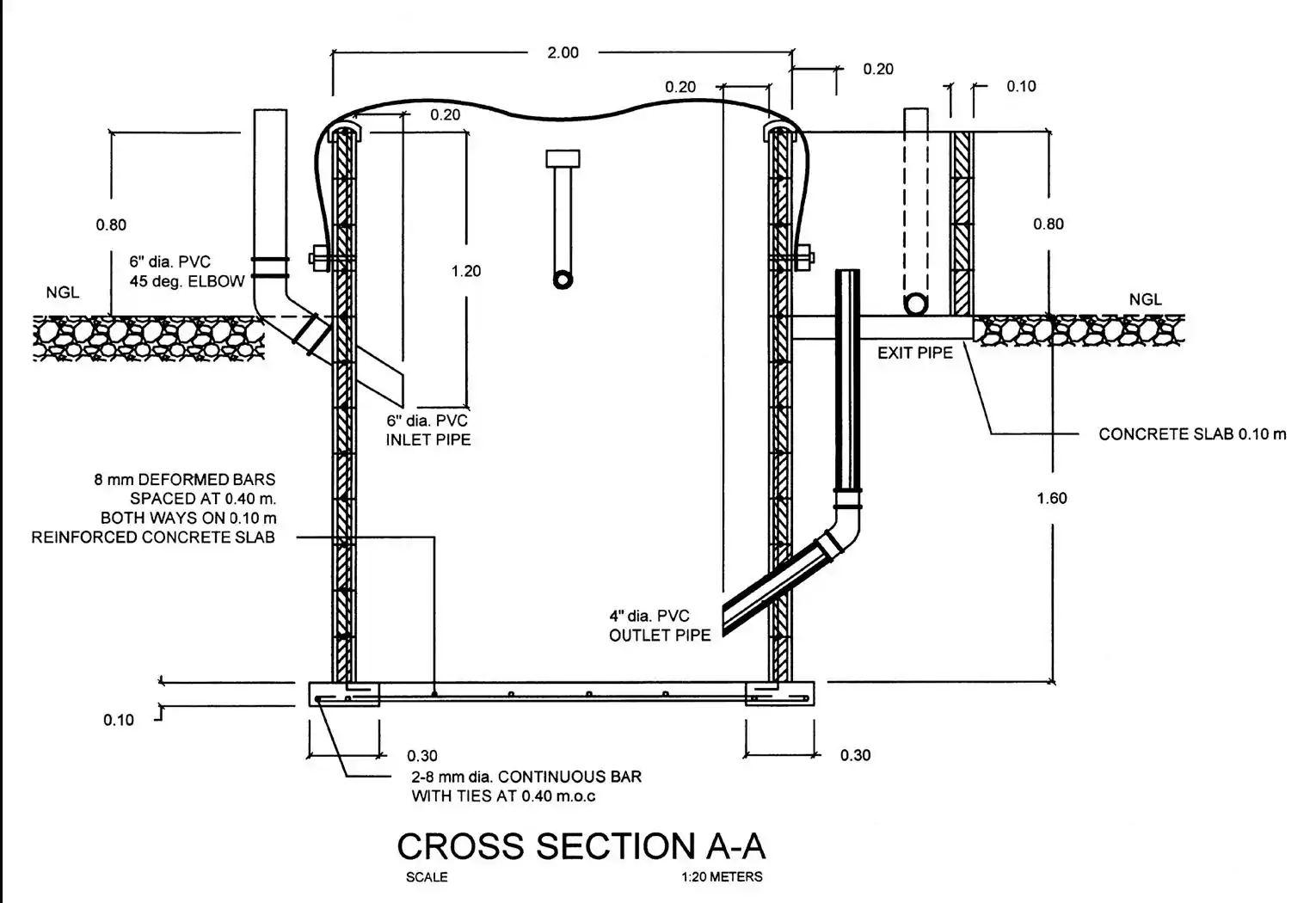 6. The HBS has a below ground section of about 1.6 mtr and an above-ground section of 1.0 mtr. (This UNIQUE feature expedites sediment removal as described later in operation & maintenance.)