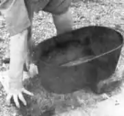 Remove from the fire after boiling. (A discarded horseshoe can come in handy.)