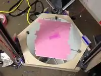 Adjust all mirrors accordingly to angle the beam around the print bed (this is much easier to do in the dark).