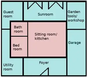 The House-in-a-House specifies the partition of the house in a warm central zone and a cool peripheral zone. The central zone contains sources of heat, while the peripheral zone is not or less heated. During the cold winter the utilization of the peripheral zone is limited.