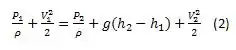 Where the gravitational constant is g=9.81m/s2 and the atmospheric pressure is 101,325Pa. The velocity of the water entering the pump will be the same as the velocity at which the user propels the hose downward into the well. Assuming in each downward motion the hose travels a distance of 0.15m and this motion takes 0.5 seconds to execute than the velocity at which the hose is moving is 0.3m/s. Therefore the velocity of the water entering the hose is V1=0.3m/s. Since compressibility effects can be ignored the Bernoulli equation, equation (2), can be used to calculate the exiting velocity.