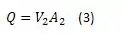 Using the exiting velocity, V2, the volumetric flow rate of the system can be found with equation (3).