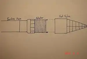 - Instead of an adapter any other method for attaching the foot valve to the hose can be used as long as an appropriate seal is made between the two