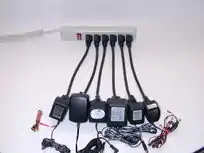 Leaching devices are also know as "wall warts", draw small amounts of electricity, even when not charging or turned on. These small amounts of energy are multiplied by the number of devices plugged in and add up over time. These devices are essentially "leaking" electricity when the device is switched off. These devices sometimes draw so little electricity that the KillAWatt will not be able to read the current drawn. Idle phone chargers, computers on stand-by, game consoles, internet routers and curling irons are examples of leaching devices.