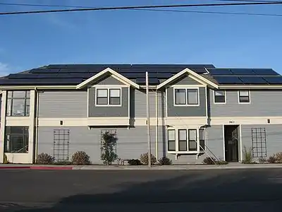 - Description: This is a large solar panel arrary that powers the McBane and Trush office building. The hot water solar collectors on the right are used inside for the radiant floor heating system.