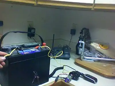 - Description: A 12V deep cycle battery is charged during the day by a small 4”x6” PV panel which is wired to charge any 12V devices during the day or at night. Cell phones, battery chargers, and any other device that can be plugged into a cigarette lighter in a car.
