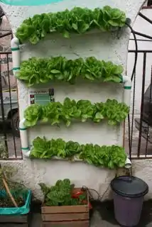 Vertical gardening helps you make the best of the light you have and optimize on the vertical space available in condensed areas. Traditionally vertical gardening includes trellising, terracing, or tumbling. Trellising includes having crops that like to grow vertically up poles like: snow peas, pole beans, and cucumbers. In an urban environment terracing includes staking plants in a stair step sequence in containers. Tumbling includes plants that grow well in hanging planters and let their leafs sprawl toward the ground: like tomatoes, strawberries, cucumbers, and thyme.[2] The hydroponic vertical garden can be considered somewhat of a terracing strategy, however the stacking does not occur in a stair sequence, but rather goes straight up, since the PVC container can be mounted to the wall.