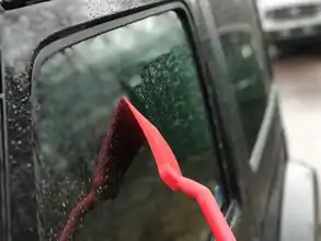 Action shot scraping the window of a Jeep.