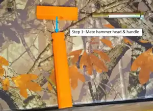 This design was kept as simple as possible to ensure any level of printer can produce it with the minimal amount of material usage, reducing the size of the pla head that functionally only needs to locate the bolt also minimizes the change of tool failure due to a missed swing, as the head of the bolt covers most of the hammer head.
