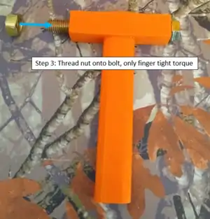 - If the hammer head warps or the hole ends up being slightly too tight, rotating the bolt clockwise will allow it to pull itself through using the threads on the bolt. This is intended to be a tight clearance hole but depending on a variety of factors there is the possibility this does not happen with every printer configuration and every set of environmental conditions. I ran into this issue on my first print and with the adjusted clearances this works as intended on my printer configuration and filament.