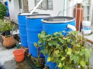 Some of rainwater goes to plants in the garden, while the rest goes to domestic uses