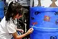 Enrique Lomnitz teaching students at Villa Victoria about Rainwater harvesting