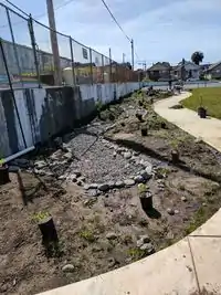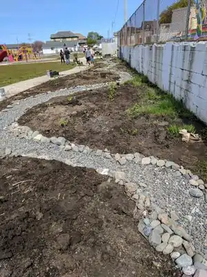 | 5 (Feb. 13) | Pitch initial design proposal, prototyping, obtain materials, begin landscaping | We present the design proposal to Heidi, get feedback. Obtain materials. Start building meandering dry creek bed. |