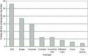 The vast majority of people in developing countries use biomass fuels for all their energy requirements. These incorporate a wide range of fuels such as fuelwood, charcoal, crop residues and animal dung. In rural areas few other fuel sources are available or affordable. However, as people's incomes grow they begin to use 'modern' fuels more extensively. When people can afford kerosene and gas (LPG) they prefer these fuels to fuelwood or dung for cooking. As can be seen from figure 1, kerosene and LPG are many times more efficient, less damaging to the health and are much easier to use for cooking. Kerosene is also widely used for lighting in developing countries.