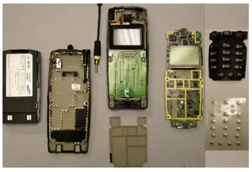 Now that we have discussed the enormity of cell phone use, let’s discuss their major components. The Environmental Literacy Council gives a list of the components in cell phones[2] (Figure 2). There are eight components in a typical cell phone: