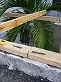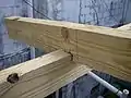 Fig 5: Rebar from the column is threaded through holes drilled in the wood.