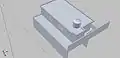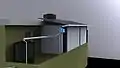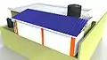 Below are the initial designs of the new storage room. The 3D render shows a rainwater catchment system. The gap on the right side of the 3D render was later changed due to structural constraints.