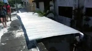 Caption - Secure the gutter to the roof so that it does not fall under the weight of the water.