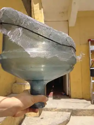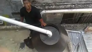 - Create a mosquito/insect barrier for the rainwater storage overflow using a diagonally cut PVC pipe and plastic screening material.