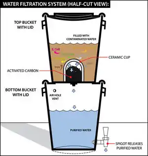 Suspended particles are removed by the sediment filter. The sediment filter prevents small particles that pass through primary screening- such as sand, dust, air pollutant particles, and small pieces of metal- from entering the silver impregnated activated carbon filter.[4] Activated carbon has a very high surface area and is ideal for constituent removal by adsorption. Activated carbon is known to remove taste and odor-causing compounds effectively as well as some trace organics. [5]