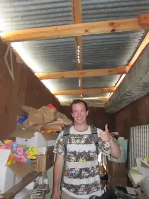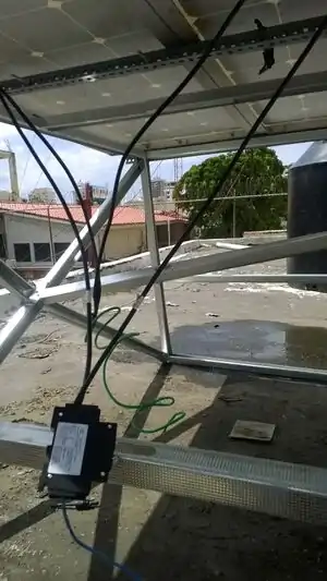 The Practivistas Solar team of 2015 returned to the system in La Yuca and found that the inverter was not working and needed to be repaired. They also found that the rainwater catchment system has been dismantled due to a storm and children playing with it. The teaching assistant Jack Ingram and Javier Duran Jr fixed the rainwater catchment system and Javier also fixed the wiring for the LED lights in the storage room that seemed to be disconnected by a dent in the roof, possibly as a result of the storm. To fix the inverter Tito, local electrician and taxi driver, helped the team by taking the inverter to SM Electronica to have it repaired for 1,000 pesos. The inverter was then reinstalled by Tito and Lonny Grafman. The team also monitored the health of the batteries by discharging them to 60% and recharging them. By monitoring the voltage with a multimeter the team was able to see the duration of time it took for the batteries to charge. The batteries proved to be healthy as the school rarely uses the system. The team explained how to operate and how to maintain the system with the maintenance people at the La Yuca school.