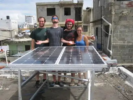 During the months of May through July in 2014, students from Humboldt State University in the Practivistas Dominicana Program worked in collaboration with Universidad Iberoamericana (UNIBE), Collectivo RevArk, and the community of La Yuca. La Yuca is a small community located in the city of Santo Domingo, Dominican Republic. A group of five students consisting of Noah Coor, Jackson Ingram, Emily Klee, and Jeff Mosbacher worked with community members and school staff to design a photovoltaic system to provide power for the electricity needs for two of the four schoolrooms in La Yuca for when the power goes out. There are four schoolrooms that are powered by the grid. Currently, there is a small solar panel that provides power for lights in the school's storage room, however it is not functional.