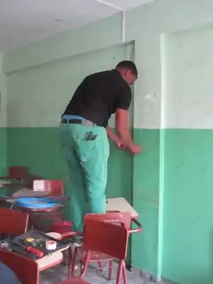 | June 12th | Went back to La Yuca to talk with teachers at the school to learn about their energy needs. Learned that the electricity they get from the city was free, and that a PV system was not necessary to power the whole school. However, the teachers wanted a system that would provide backup power for when the power goes out. Took pictures of the classrooms and learned that each classroom required at least one light and two fans. Took measurements of the rooftop. Set up a meeting with the director of the school to discuss her opinions on the future PV system. | ![]() |