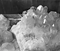 Quartz is formed by supersaturation of water with a silicate which then solidifies. Quartz always has the same characteristic form. There are points that project from a base which are prism-like with parallel opposite sides. That means that if you broke off a point and set it on a flat surface, the top would be flat. The point has many flat sides, but for each side, there is one parallel to it.
