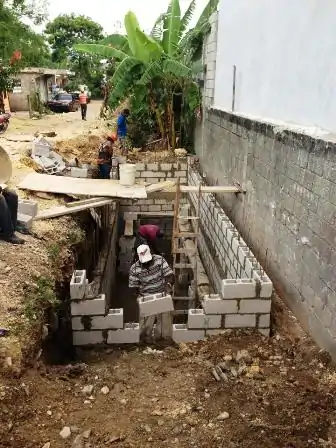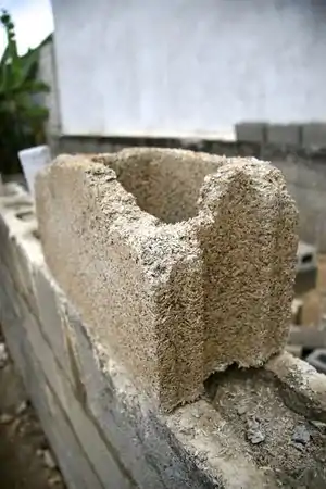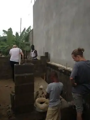 | June 26th | About six layers of fibercrete bricks have been laid down on top of the foundation for the storage room of the botica popular. | ![]() ![]() |