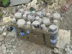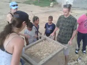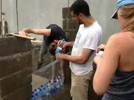 | June 15th | Develop prototypes. Using a wooded frame (2' x 4') and chicken wire, the group experimented with a mortar and plastic bottle wall. In addition, a similar technique was used to develop a block type prototype. On this day more progress was made on the cistern as well. Also, many valuable community concerns were presented. Most notably from Gregory and Julio who expressed their concerns with security, stating that a ecoladrillo on a pharmacy that carries valuable medicine would need to be able to withstand burglary. At the end of the day, Domingo, a valuable asset in previous projects was contacted and it was agreed that we would meet the following morning to further discuss ecoladrillo. | ![]() |
